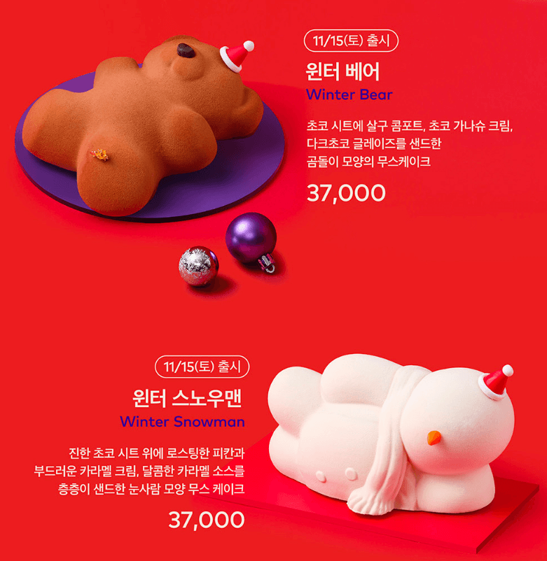 | 윈터 베어 | 37,000원 | 초코+살구+가나슈, 곰돌이 모양 |