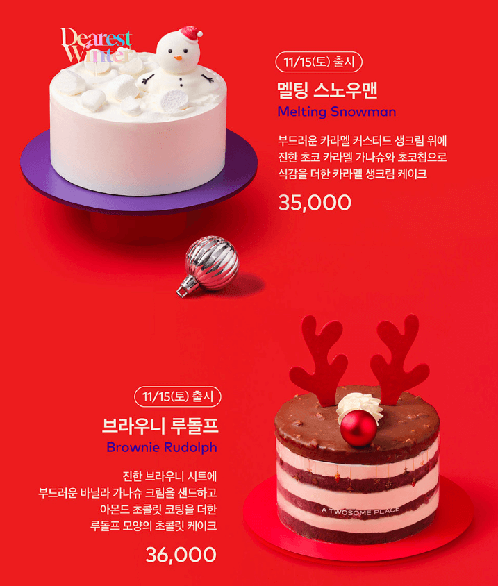 올해는 감성과 맛, 모두를 잡은 투썸플레이스 크리스마스 케이크로 특별한 연말을 만들어보세요.